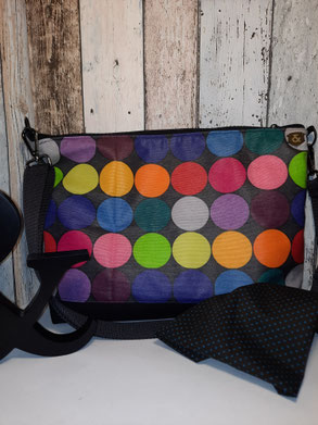 Das rosafarbene matte Kunstleder bringt den Kirchblütenstoff im oberen Teil erst so richtig zum Strahlen.